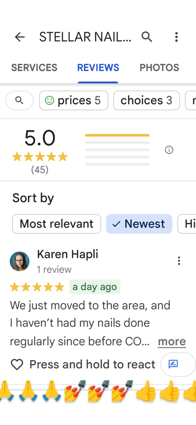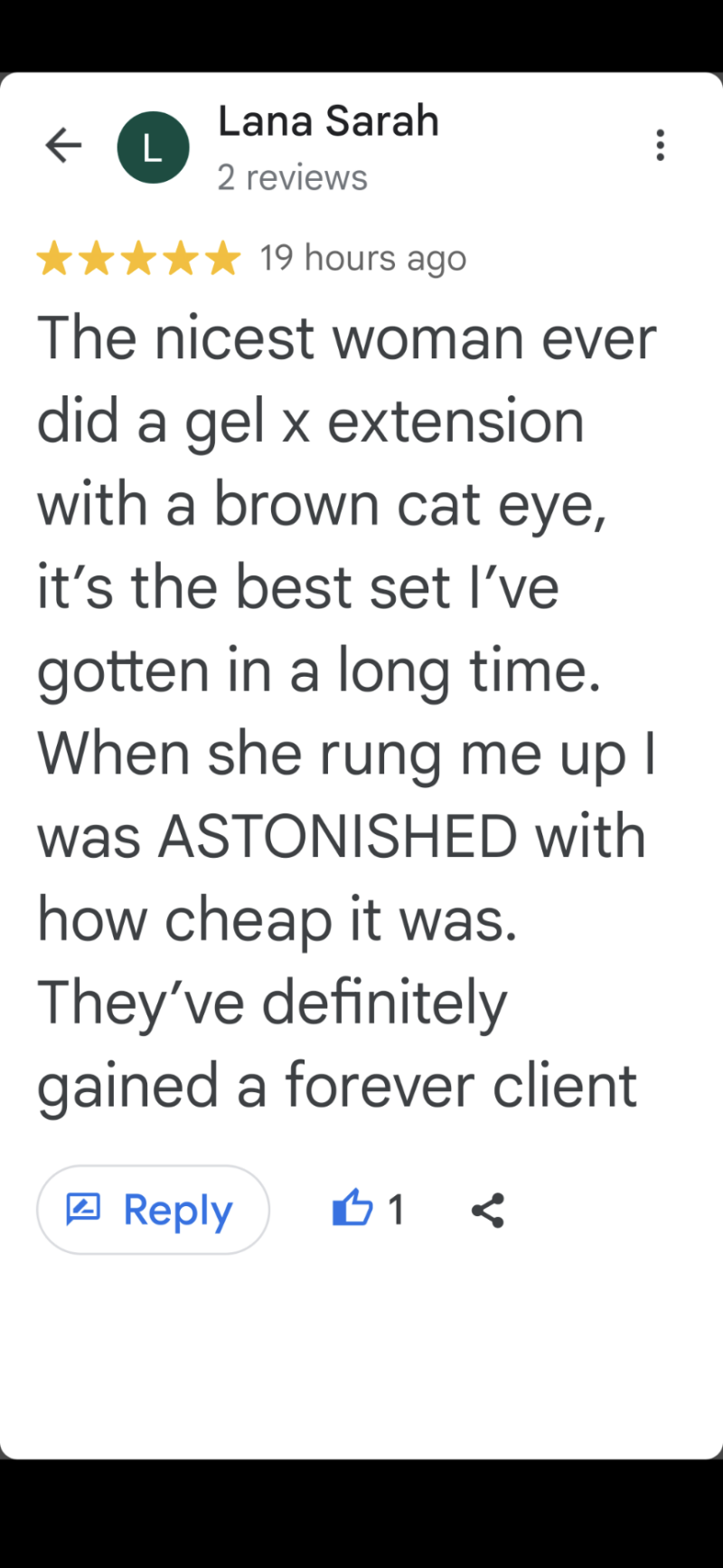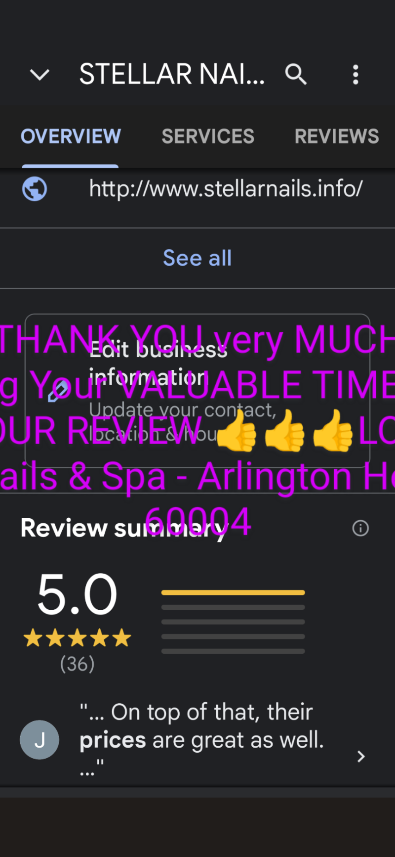 💅💅💅We are Full-Service 5-Star Nail Salon. ⭐⭐⭐⭐⭐ We received "BEST of 2024 & 2025" AWARD 🏆🏆🏆We offer Google 5-STAR Services at an Affordable Price. 💖💖💖We love to take care of Your Beautiful NAILS 💅 💅 💅 Please Come In🙏🙏🙏You will be pleasantly surprised 🌹🌹🌹