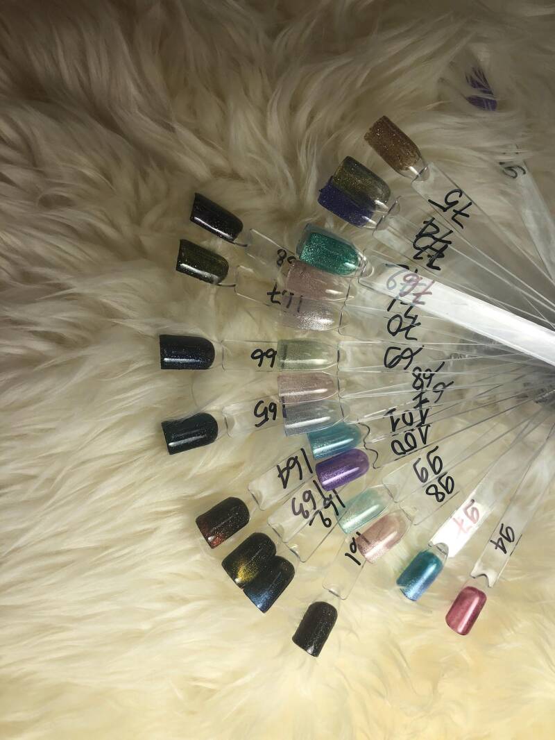 .... ANSWER: Per ERIN CELLETTI of BYRDIE.com - July 02, 2022 >>> "There are few things more striking than the marbly, mystical appearance within the eyes of our favorite feline friends. Shades of blue, green, brown, purple, gold, black, and amber combine in a swirly combination of an almost metallic appearance, complete with a striking dark pupil. So, like a true nail art aficionado would do—why not capture the viral cat-eye look on your own nails? While leopard manicures may have long held a monopoly on nail art inspired by our favorite cats, perhaps it's time they step aside to let cat-eye nails have a major moment. To achieve the look of this gorgeous trend, a metallic, diagonal line runs across the nail, typically painted with different deep jewel tones, creating the mirror-like effect of staring straight into a cat's eyes. ... "