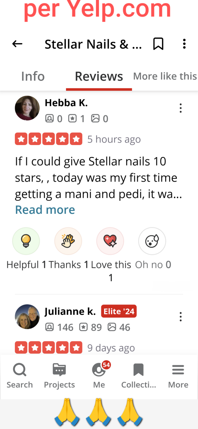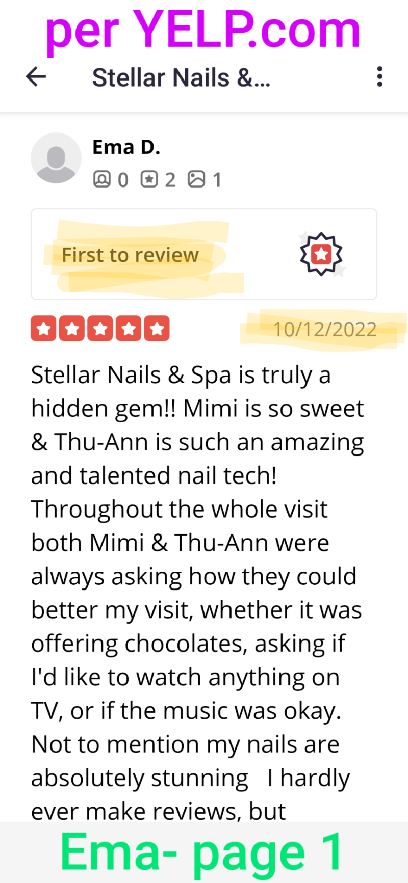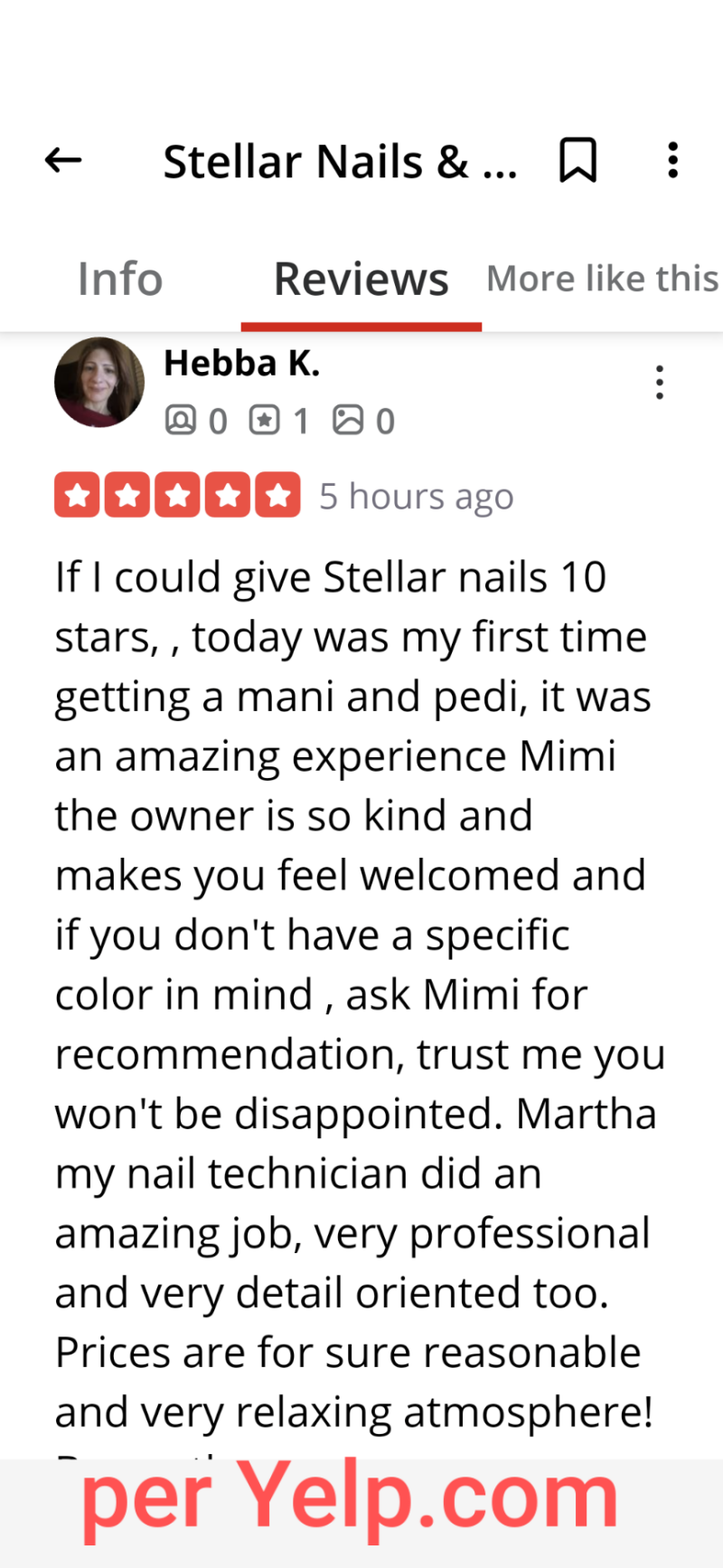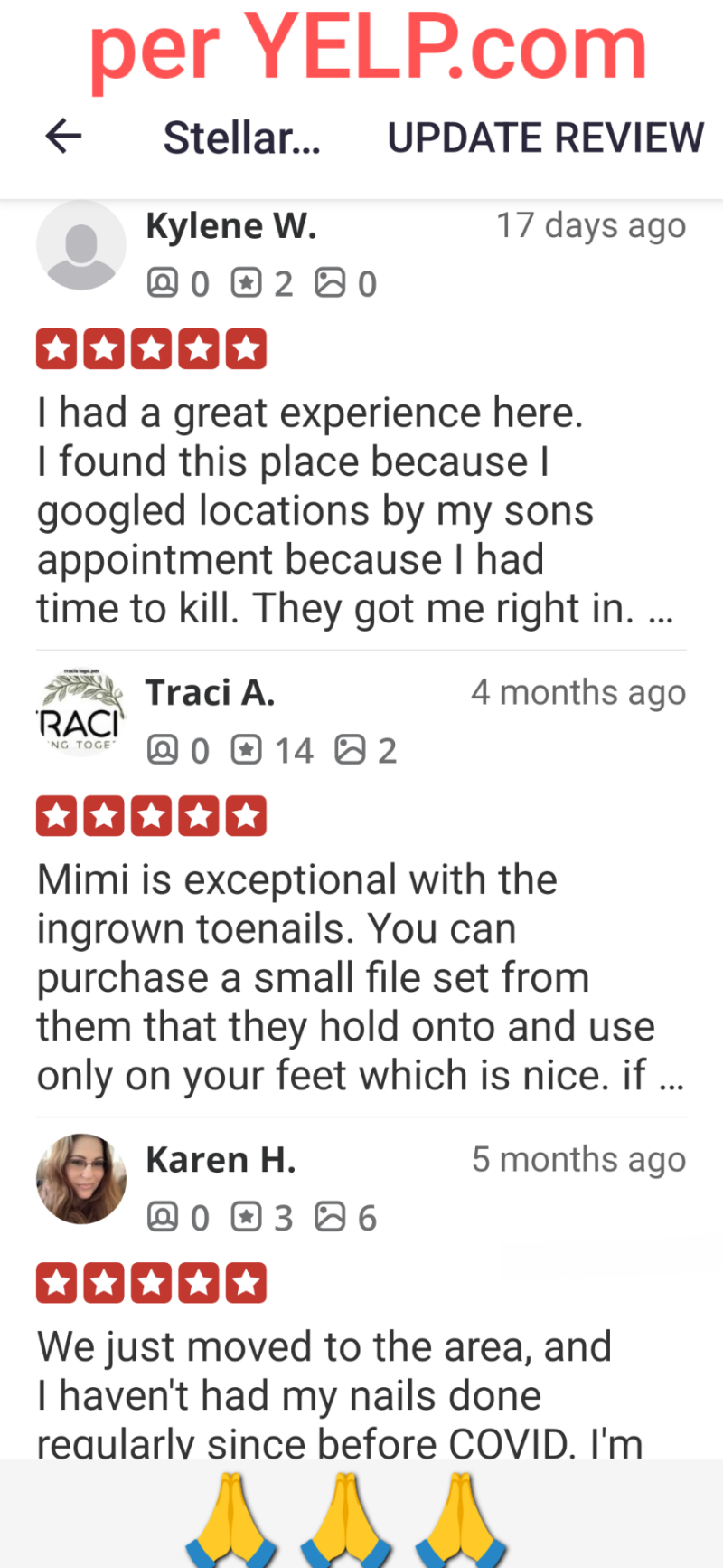 πππWe are so grateful for all the Time and Effort our Beloved Customers have taken to post their Feedbacks in Google Maps. πππ... As of 26th November 2023, during the last many months of Caring for your Nails: the MANICURE π π π , your BeautyπΉπΉπΉ... the PEDICURE π£, your Health ππππΊπΊπΊ... we have received from you PERFECT 5-STARS.πππππ ... Thank You, all of YOU, so very muchπππ .... Lots of LOVE β€οΈβ€οΈβ€οΈfrom all of us in STELLAR Nails & Spa - Arlington Hts, IL 60004...πππ ... Please call or text us at our 24/7 Dedicated iPhone 224-248-4204βοΈβοΈβοΈπ±π±π±πππ